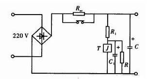 开关电源的输入一般采用电容整流滤波电路如图2所示,滤波电容C可选用低频或高频电容器,若用低频电容器则需并联同容量高频电容器来承担充放电电流。图中在整流和滤波之间串入的限流电阻Rsc是为了防止浪涌电流的冲击。合闸时Rsc限制了电容C的充电电流,经过一段时间,C上的电压达到预置值或电容C1上电压达到继电器T动作电压时,Rsc被短路完成了启动。同时还可以采用可控硅等电路来短接Rsc。当合闸时,由于可控硅截止,通过Rsc对电容C 进行充电,经一段时间后,触发可控硅导通,从而短接了限流电阻Rsc。