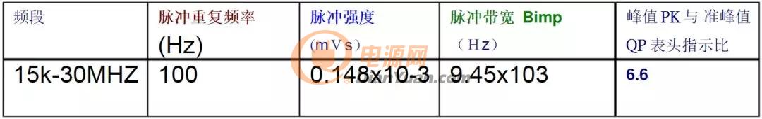 由表可知,峰值测量结果≥准峰值测量结果。下表中中列出了输入标准脉冲,在标准宽带情况下峰值与准峰值表头指示之比值。峰值测量时的绝对脉冲特性: