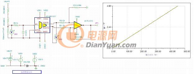 图5:通过隔离放大器和运算放大器感测隔离电压