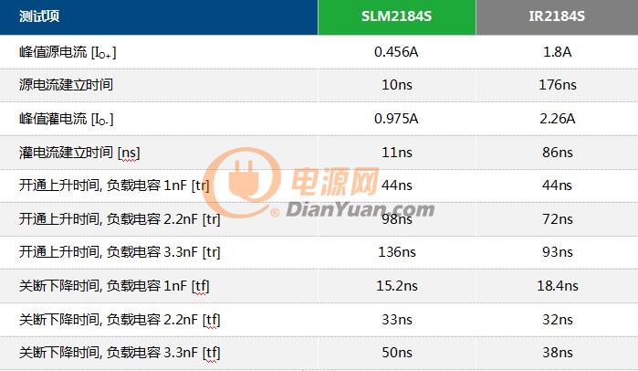 表格 1:SLM2184S 和IR2184S驱动电流和驱动时间的对比