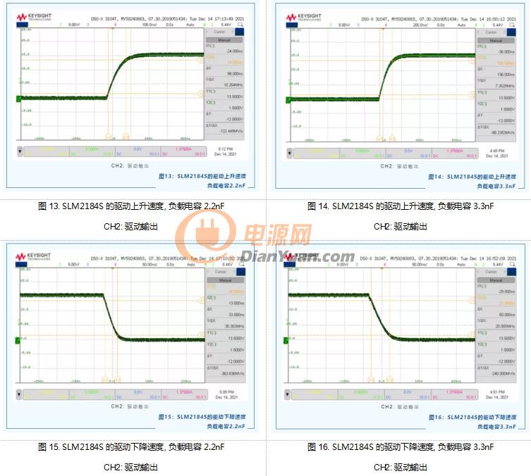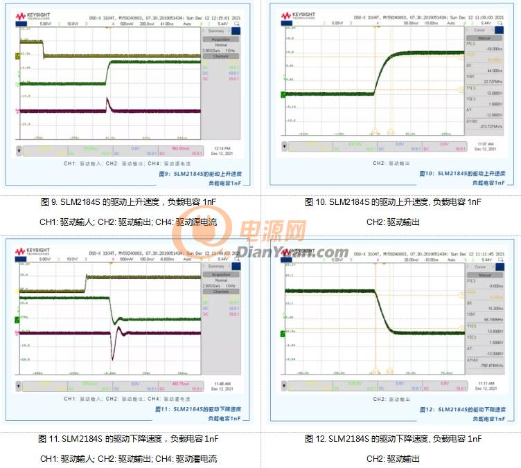 以下通过实测两款芯片SLM2184S和IR2184S的性能来说明驱动电流建立时间对驱动速度的影响。