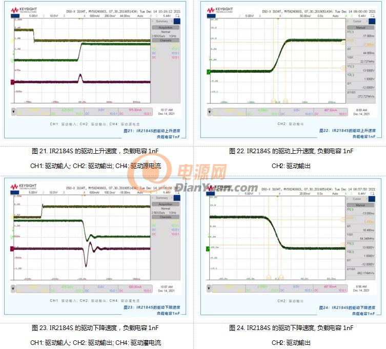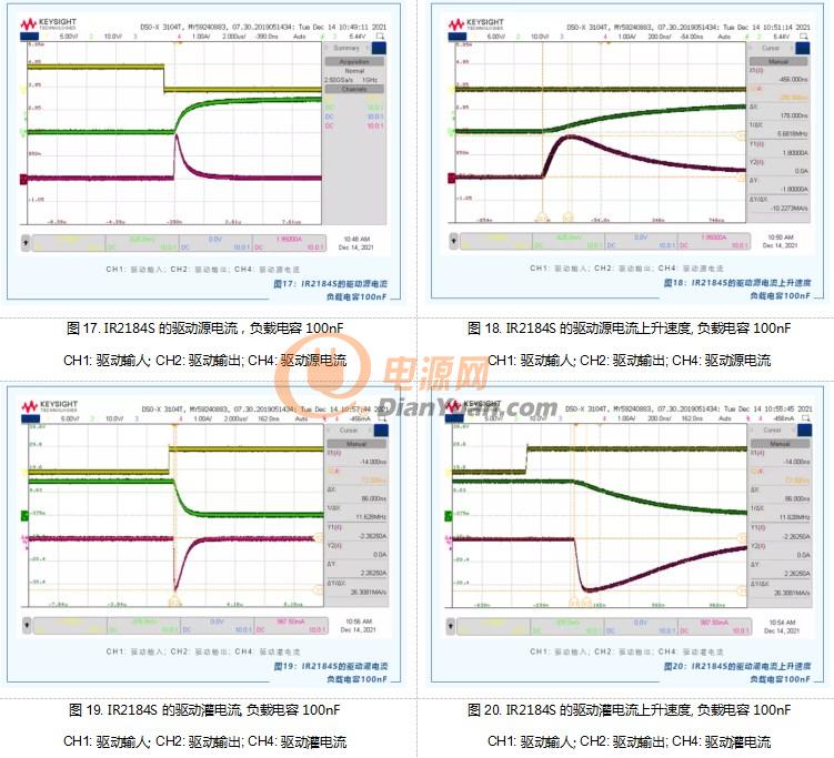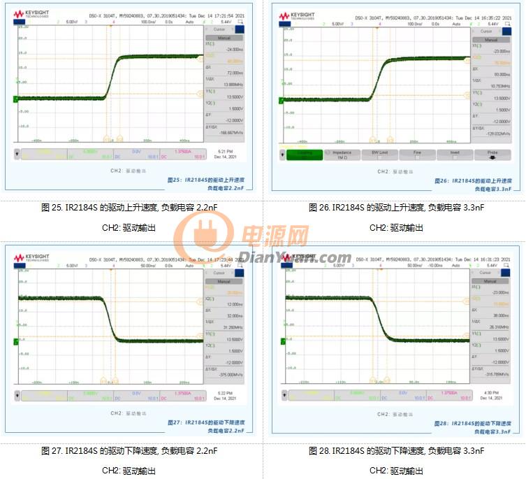 ✔ 图17~图28: 实测IR2184S的驱动电流和驱动时间的波形