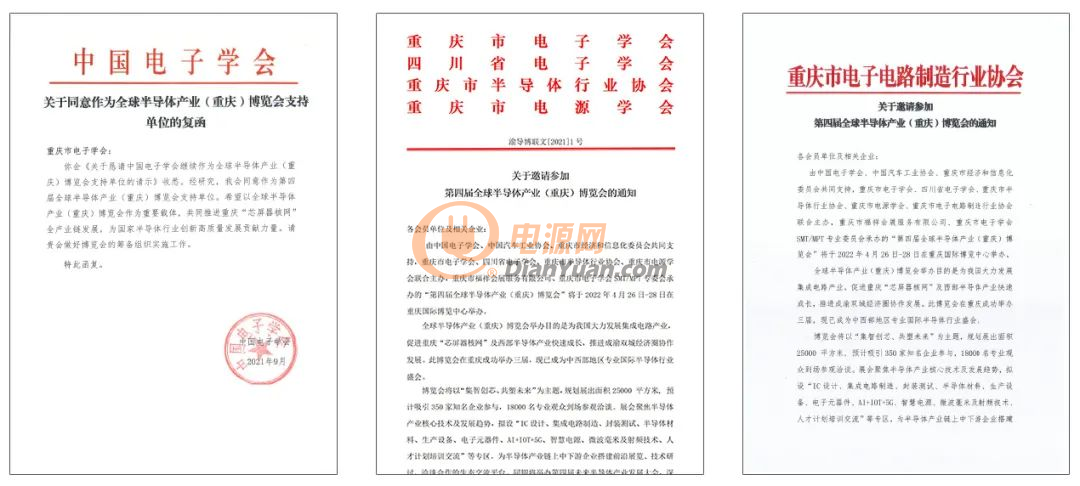 第四届全球半导体产业(重庆)博览会在中国电子学会、中国汽车工业协会、重庆市经济和信息化委员会共同指导和大力支持下,积极发挥行业的引领性,通过重庆市电子学会、四川省电子学会、重庆市半导体行业协会、重庆市电源学会、重庆市电子电路制造行业协会等主办单位加大筹备组织力度,先后面向会员单位及相关企业发文《关于邀请参加第四届全球半导体产业(重庆)博览会的通知》。