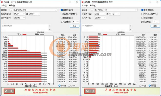 ATTO Disk Benchmark -- 顺序读取 6.87 GB/s,顺序写入 5.91 GB/s 。
