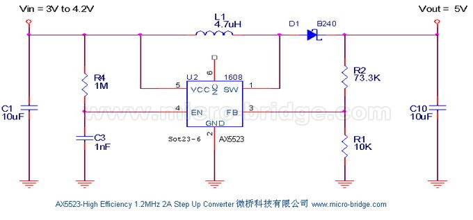 AX5511(SOT23-5),FP6291(SOT23-6),内置2A MOS,适用于锂电池升压至5V/1A应用