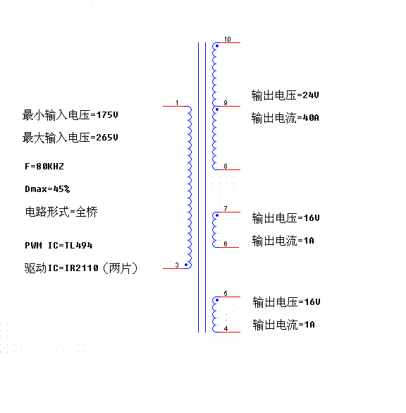 业余新手求大家帮忙计算一下这个变压器的参数!!!