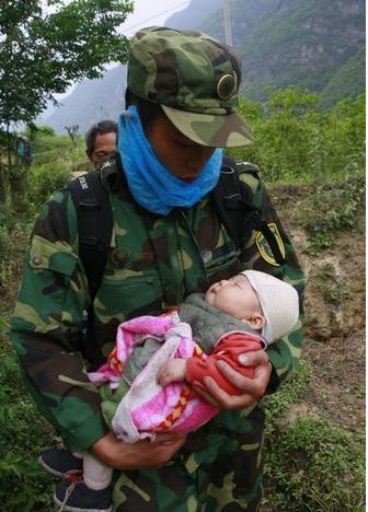 抢救人员发现她的时候,她已经死了,是被垮塌下来的房子压死的,透过那一堆废墟的的间隙可以看到她死亡的姿势,双膝跪着,整个上身向前匍匐着,双手扶着地支撑着身体,有些象古人行跪拜礼,只是身体被压的变形了,看上去有些诡异.救援人员从废墟的空隙伸手进去确认了她已经死亡,又在冲着废墟喊了几声,用撬棍在在砖头上敲了几下,里面没有任何回应.当人群走到下一个建筑物的时候,救援队长忽然往回跑,边跑变喊“快过来”.他又来到她的尸体前,费力的把手伸进女人的身子底下摸索,他摸了几下高声的喊“有人,有个孩子 ,还活着”.