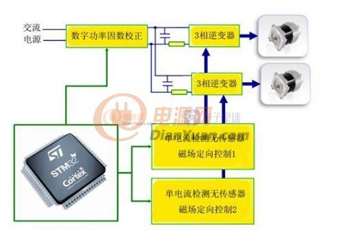图1:STM32F103HD可以同时处理双电机控制和数字PF