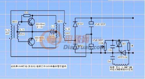 做了台1000W的双变自激,今天简单接单硅后级后试了一下,用1000W灯,灯发白,电流和电压都没有测试,接启动电阻那边的功率管发热最快,将左右两边的功率管对调也是接启动电阻的那边发热最快,之前刚做时有一边管发热快是其中一两只管坏了,换上新的好了,就是不明白为什么接启动电阻那边管发热最快,另一边管就只有一点暖,启动电阻用1K,数据差不多,借用的图